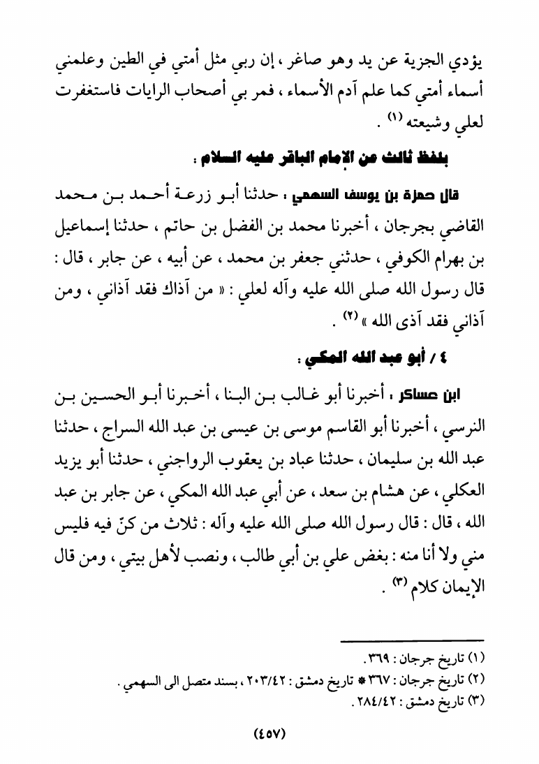 نام کتاب : سلسلة الأحاديث المتواترة، في النص على الإمام علي عليه السلام برواية أهل السنة والجماعة - 3 أجزاء نویسنده : الشيخ أحمد الماحوزي جلد : 1 صفحه : 457