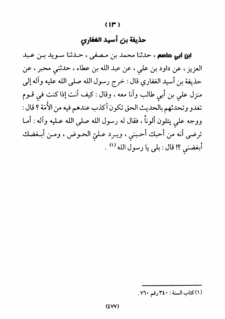 نام کتاب : سلسلة الأحاديث المتواترة، في النص على الإمام علي عليه السلام برواية أهل السنة والجماعة - 3 أجزاء نویسنده : الشيخ أحمد الماحوزي جلد : 1 صفحه : 477