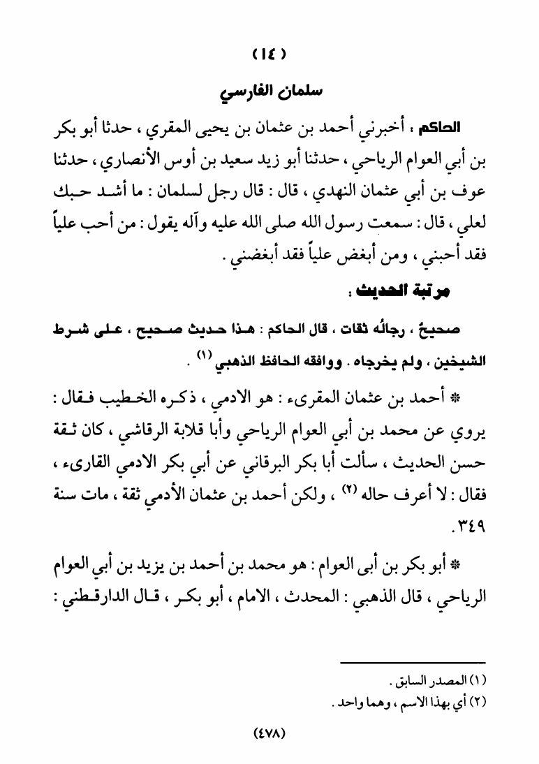 نام کتاب : سلسلة الأحاديث المتواترة، في النص على الإمام علي عليه السلام برواية أهل السنة والجماعة - 3 أجزاء نویسنده : الشيخ أحمد الماحوزي جلد : 1 صفحه : 478
