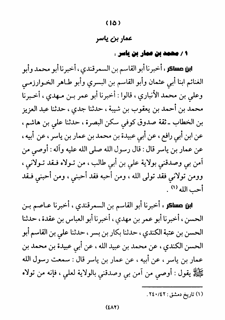 نام کتاب : سلسلة الأحاديث المتواترة، في النص على الإمام علي عليه السلام برواية أهل السنة والجماعة - 3 أجزاء نویسنده : الشيخ أحمد الماحوزي جلد : 1 صفحه : 482