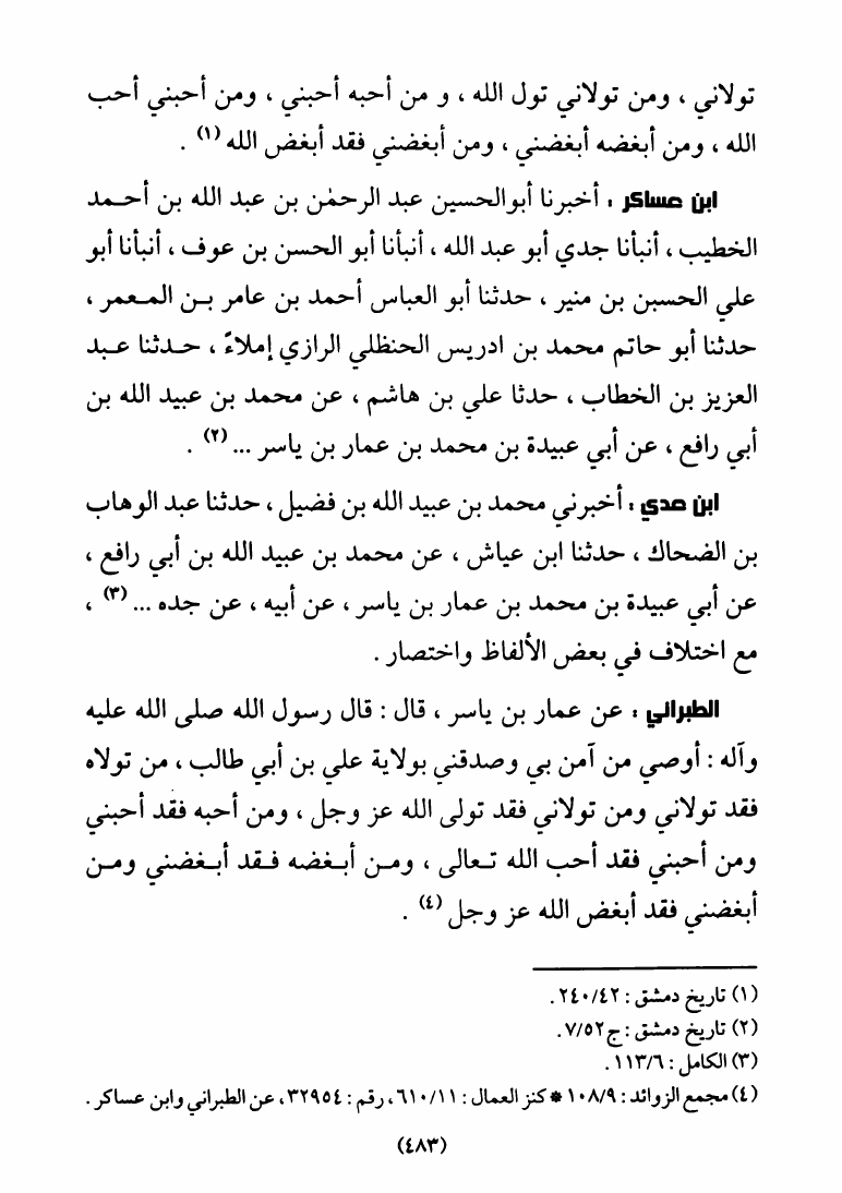 نام کتاب : سلسلة الأحاديث المتواترة، في النص على الإمام علي عليه السلام برواية أهل السنة والجماعة - 3 أجزاء نویسنده : الشيخ أحمد الماحوزي جلد : 1 صفحه : 483