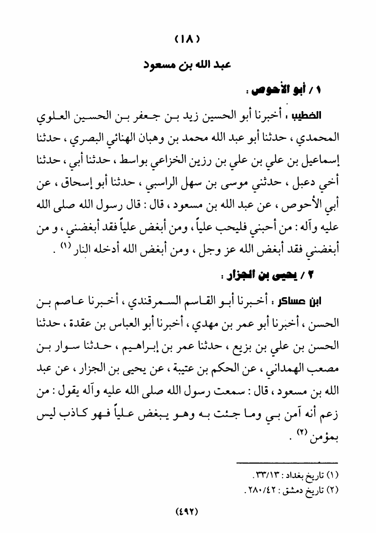 نام کتاب : سلسلة الأحاديث المتواترة، في النص على الإمام علي عليه السلام برواية أهل السنة والجماعة - 3 أجزاء نویسنده : الشيخ أحمد الماحوزي جلد : 1 صفحه : 492
