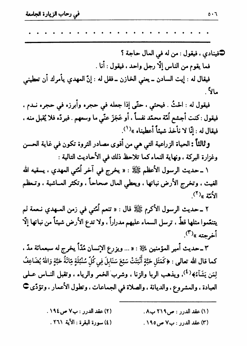 نام کتاب : في رحاب الزيارة الجامعة، البيان الكامل لفضائل أهل البيت ع ومناقبهم الرائعة في زيارتهم الجامعة نویسنده : السيد علي الحسيني الصدر جلد : 1 صفحه : 506