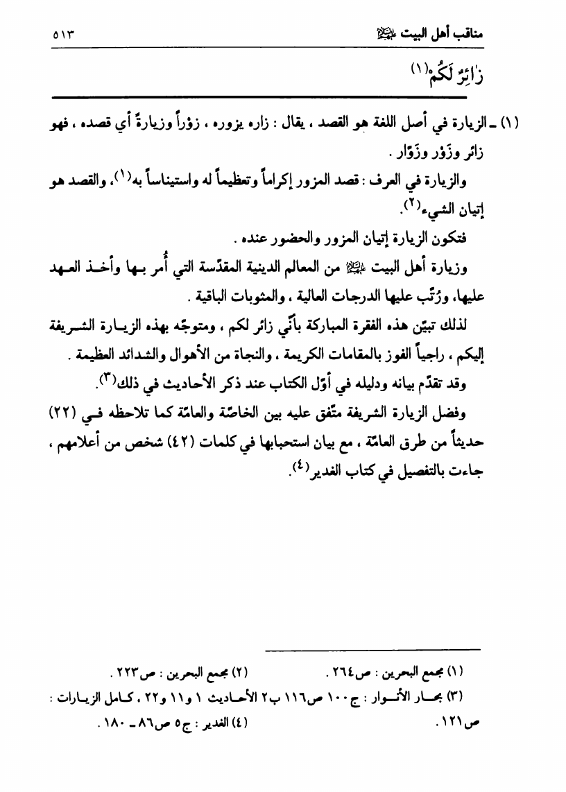 نام کتاب : في رحاب الزيارة الجامعة، البيان الكامل لفضائل أهل البيت ع ومناقبهم الرائعة في زيارتهم الجامعة نویسنده : السيد علي الحسيني الصدر جلد : 1 صفحه : 513