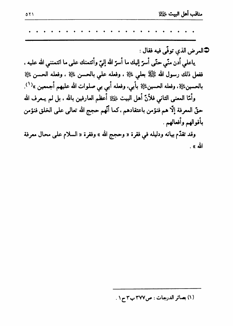 نام کتاب : في رحاب الزيارة الجامعة، البيان الكامل لفضائل أهل البيت ع ومناقبهم الرائعة في زيارتهم الجامعة نویسنده : السيد علي الحسيني الصدر جلد : 1 صفحه : 521