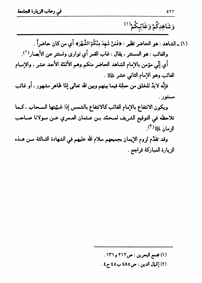 نام کتاب : في رحاب الزيارة الجامعة، البيان الكامل لفضائل أهل البيت ع ومناقبهم الرائعة في زيارتهم الجامعة نویسنده : السيد علي الحسيني الصدر جلد : 1 صفحه : 522