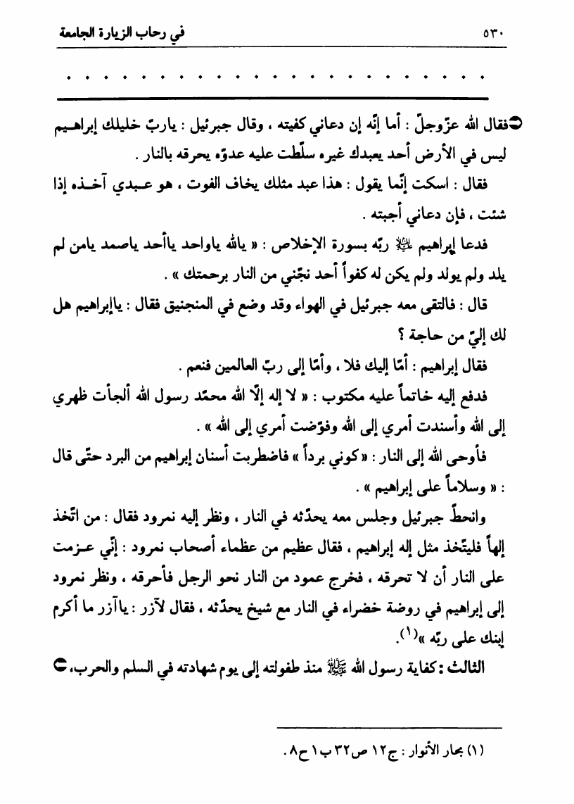 نام کتاب : في رحاب الزيارة الجامعة، البيان الكامل لفضائل أهل البيت ع ومناقبهم الرائعة في زيارتهم الجامعة نویسنده : السيد علي الحسيني الصدر جلد : 1 صفحه : 530