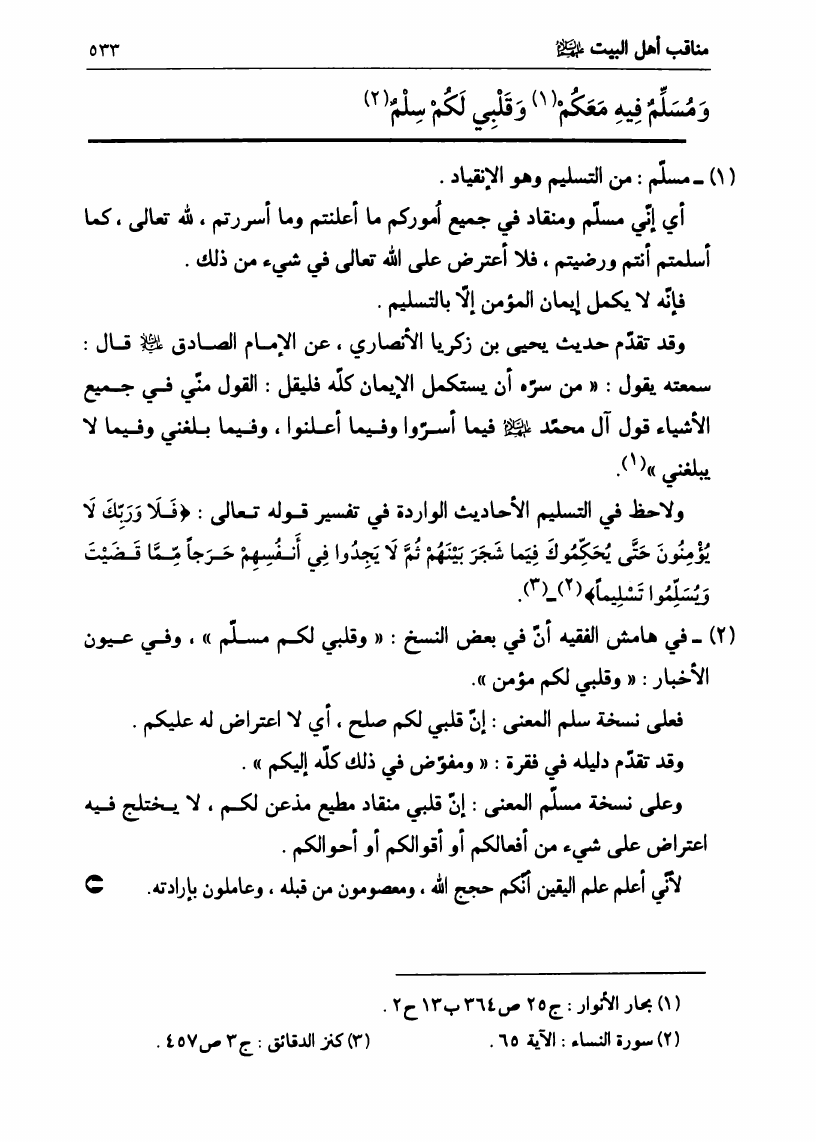 نام کتاب : في رحاب الزيارة الجامعة، البيان الكامل لفضائل أهل البيت ع ومناقبهم الرائعة في زيارتهم الجامعة نویسنده : السيد علي الحسيني الصدر جلد : 1 صفحه : 533