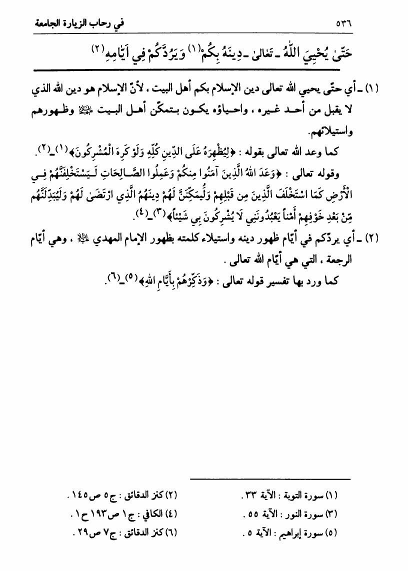 نام کتاب : في رحاب الزيارة الجامعة، البيان الكامل لفضائل أهل البيت ع ومناقبهم الرائعة في زيارتهم الجامعة نویسنده : السيد علي الحسيني الصدر جلد : 1 صفحه : 536