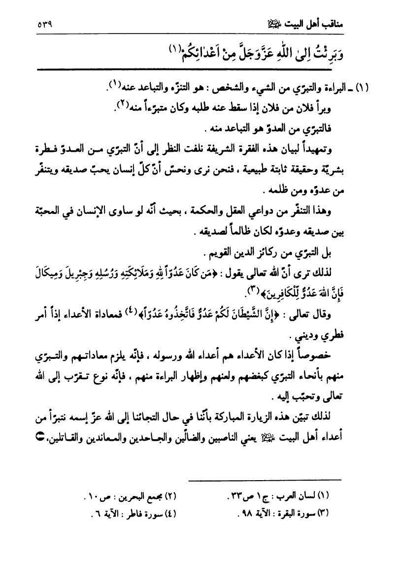 نام کتاب : في رحاب الزيارة الجامعة، البيان الكامل لفضائل أهل البيت ع ومناقبهم الرائعة في زيارتهم الجامعة نویسنده : السيد علي الحسيني الصدر جلد : 1 صفحه : 539