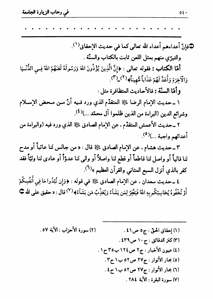 نام کتاب : في رحاب الزيارة الجامعة، البيان الكامل لفضائل أهل البيت ع ومناقبهم الرائعة في زيارتهم الجامعة نویسنده : السيد علي الحسيني الصدر جلد : 1 صفحه : 540
