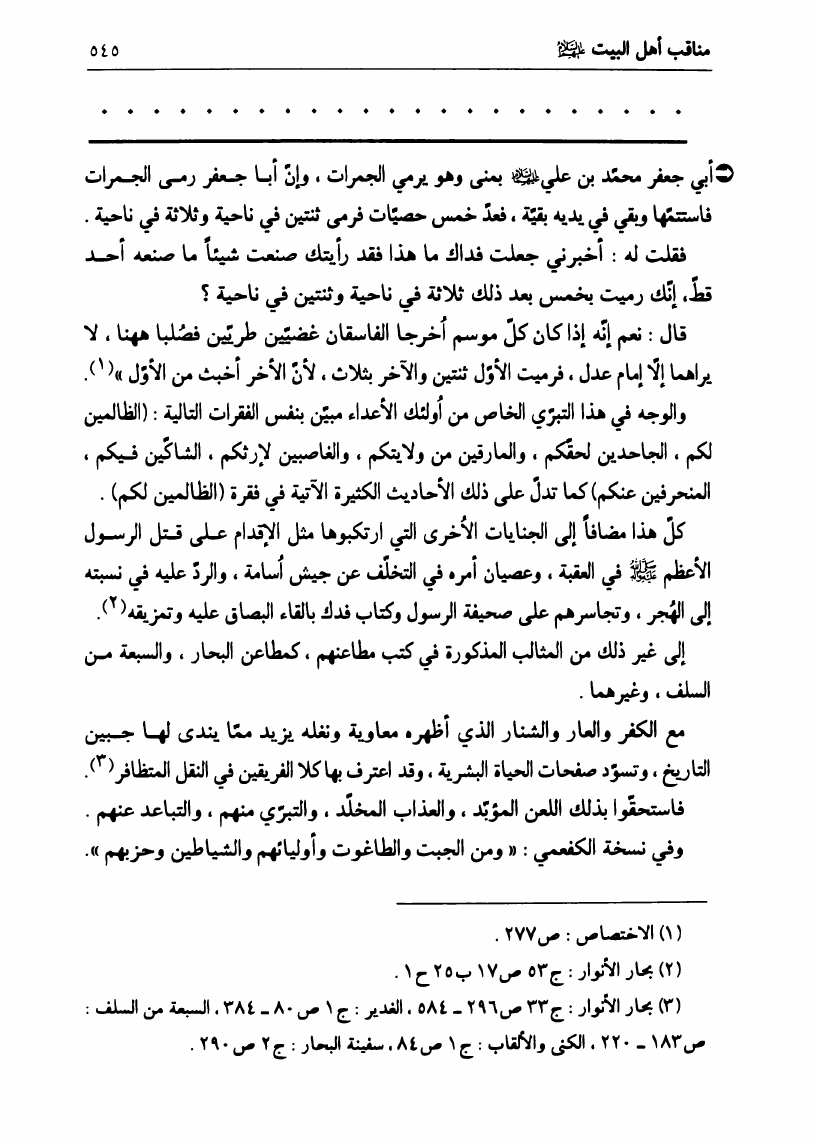 نام کتاب : في رحاب الزيارة الجامعة، البيان الكامل لفضائل أهل البيت ع ومناقبهم الرائعة في زيارتهم الجامعة نویسنده : السيد علي الحسيني الصدر جلد : 1 صفحه : 545