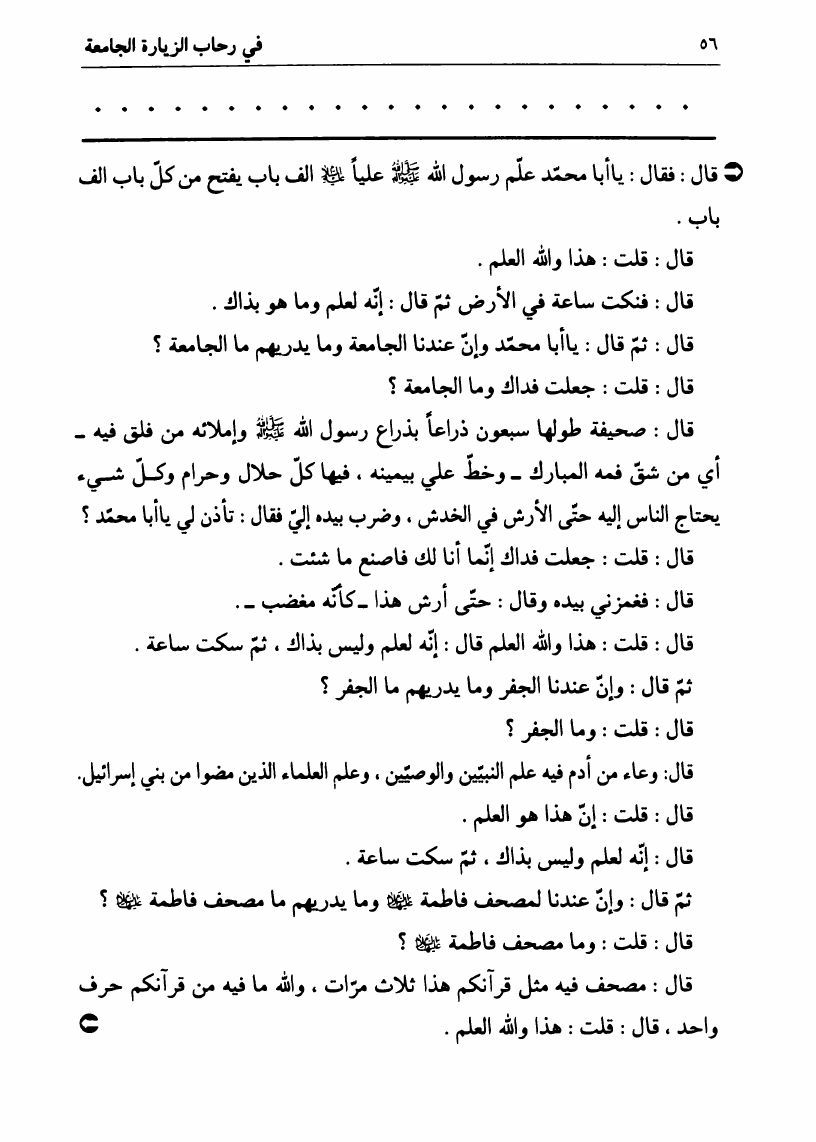 نام کتاب : في رحاب الزيارة الجامعة، البيان الكامل لفضائل أهل البيت ع ومناقبهم الرائعة في زيارتهم الجامعة نویسنده : السيد علي الحسيني الصدر جلد : 1 صفحه : 56