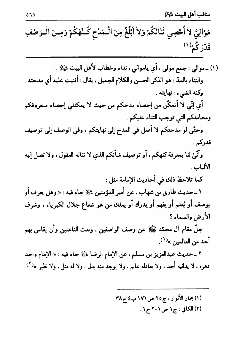 نام کتاب : في رحاب الزيارة الجامعة، البيان الكامل لفضائل أهل البيت ع ومناقبهم الرائعة في زيارتهم الجامعة نویسنده : السيد علي الحسيني الصدر جلد : 1 صفحه : 565