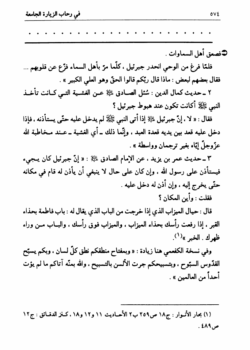 نام کتاب : في رحاب الزيارة الجامعة، البيان الكامل لفضائل أهل البيت ع ومناقبهم الرائعة في زيارتهم الجامعة نویسنده : السيد علي الحسيني الصدر جلد : 1 صفحه : 574