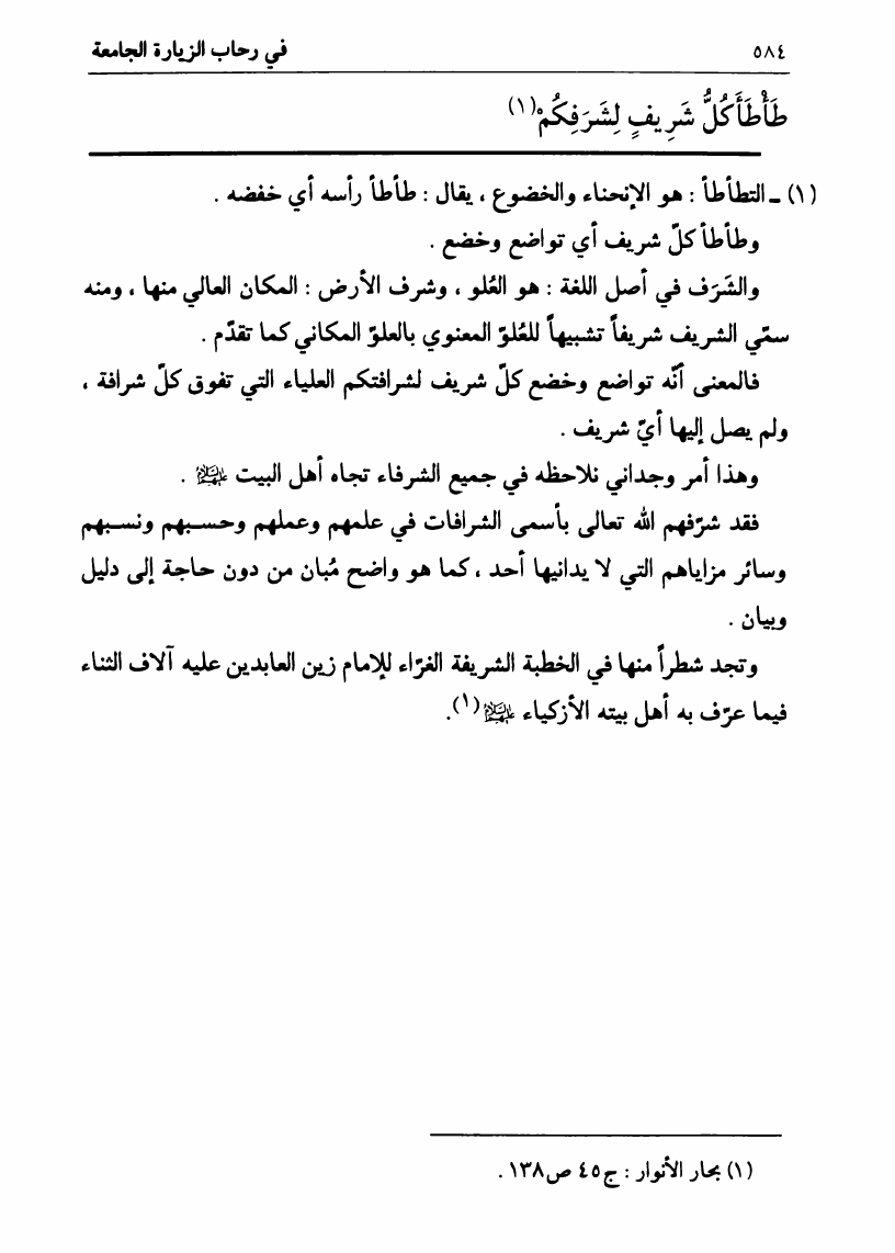 نام کتاب : في رحاب الزيارة الجامعة، البيان الكامل لفضائل أهل البيت ع ومناقبهم الرائعة في زيارتهم الجامعة نویسنده : السيد علي الحسيني الصدر جلد : 1 صفحه : 584