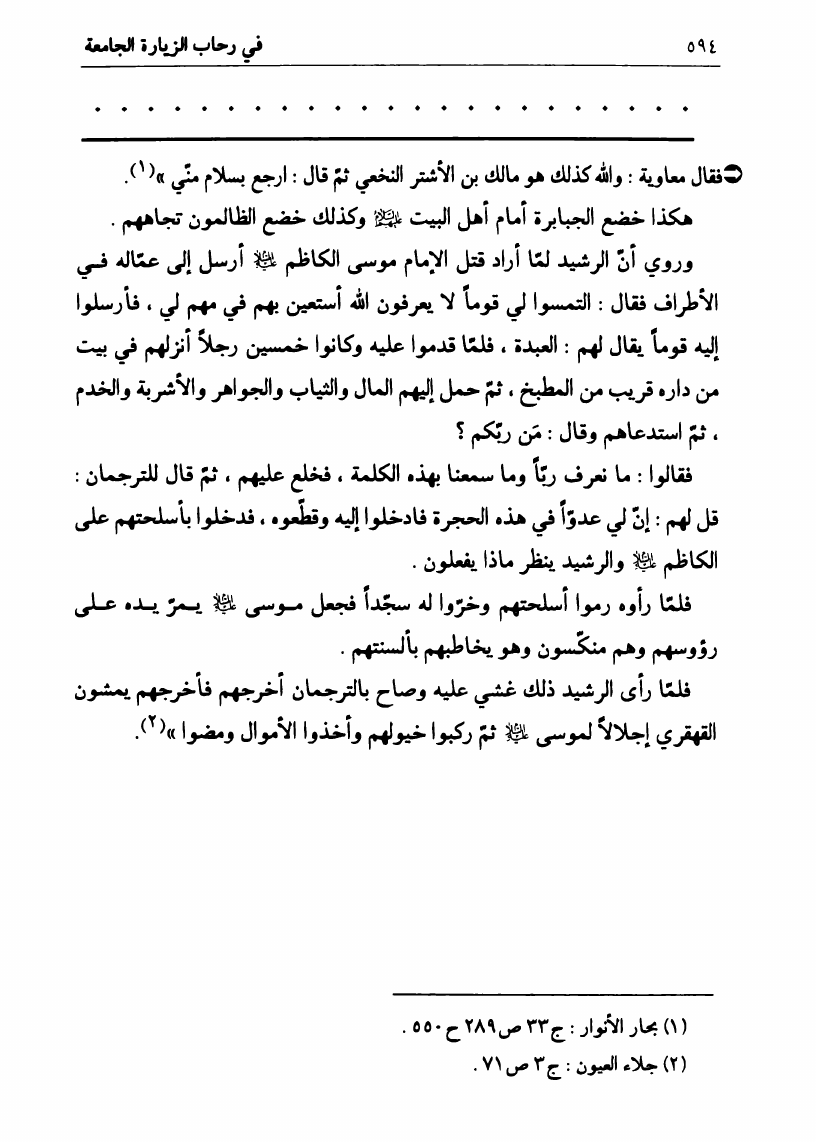 نام کتاب : في رحاب الزيارة الجامعة، البيان الكامل لفضائل أهل البيت ع ومناقبهم الرائعة في زيارتهم الجامعة نویسنده : السيد علي الحسيني الصدر جلد : 1 صفحه : 594