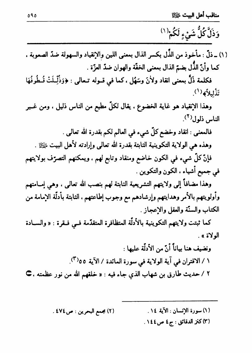 نام کتاب : في رحاب الزيارة الجامعة، البيان الكامل لفضائل أهل البيت ع ومناقبهم الرائعة في زيارتهم الجامعة نویسنده : السيد علي الحسيني الصدر جلد : 1 صفحه : 595