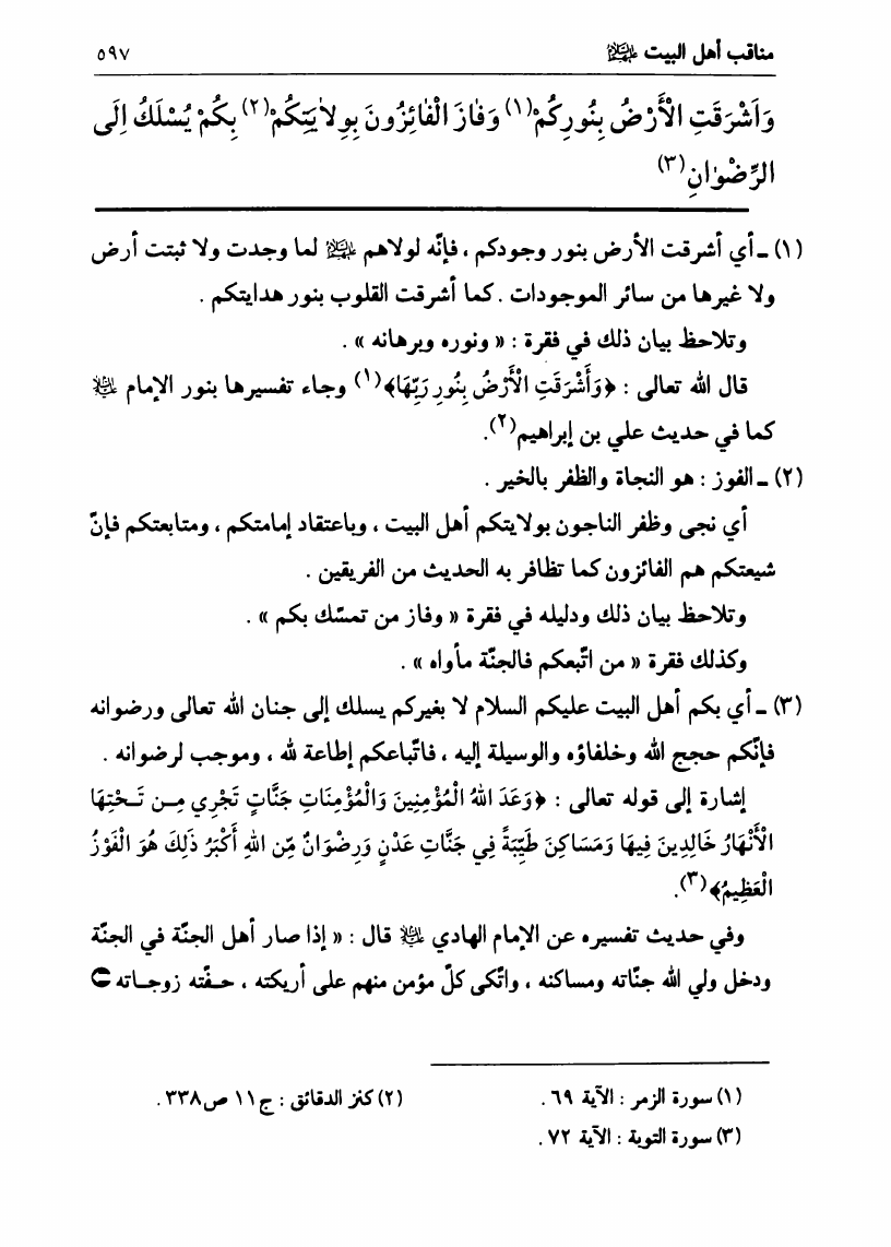 نام کتاب : في رحاب الزيارة الجامعة، البيان الكامل لفضائل أهل البيت ع ومناقبهم الرائعة في زيارتهم الجامعة نویسنده : السيد علي الحسيني الصدر جلد : 1 صفحه : 597
