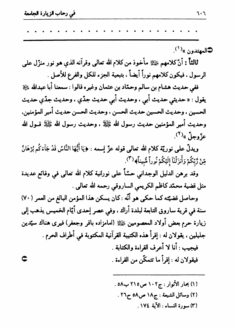 نام کتاب : في رحاب الزيارة الجامعة، البيان الكامل لفضائل أهل البيت ع ومناقبهم الرائعة في زيارتهم الجامعة نویسنده : السيد علي الحسيني الصدر جلد : 1 صفحه : 606