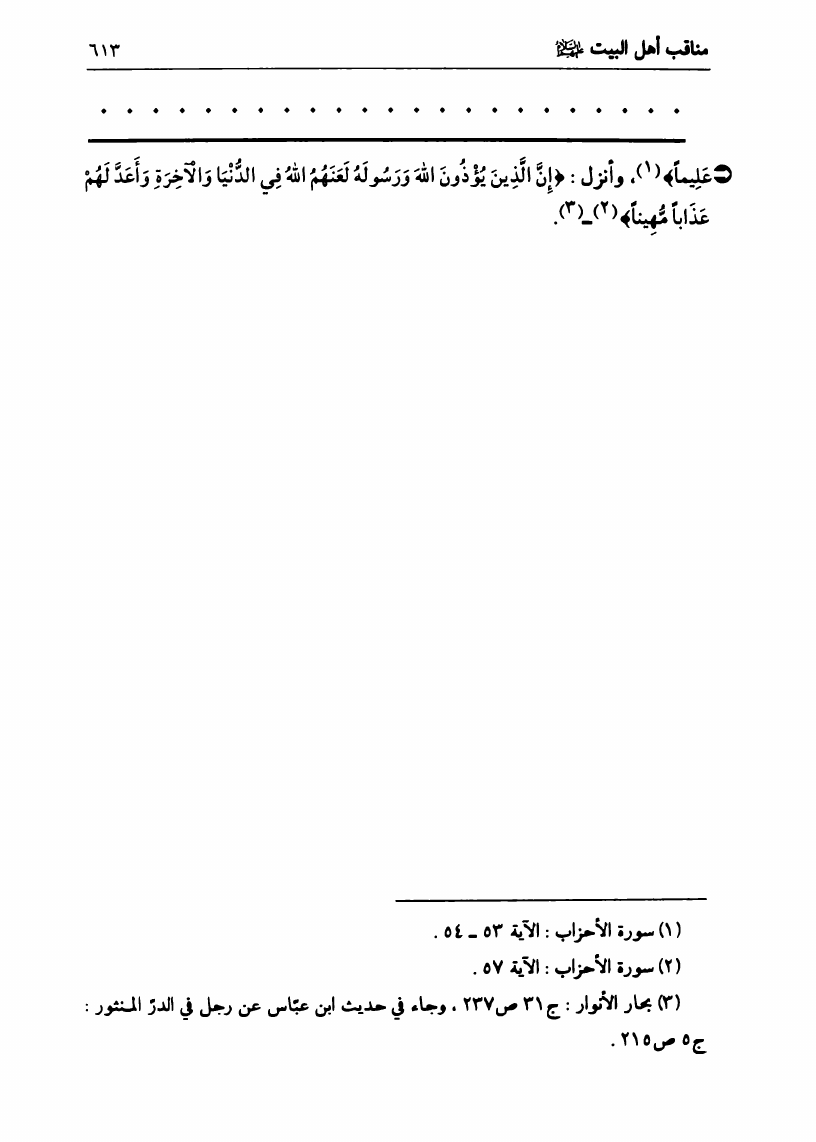 نام کتاب : في رحاب الزيارة الجامعة، البيان الكامل لفضائل أهل البيت ع ومناقبهم الرائعة في زيارتهم الجامعة نویسنده : السيد علي الحسيني الصدر جلد : 1 صفحه : 613