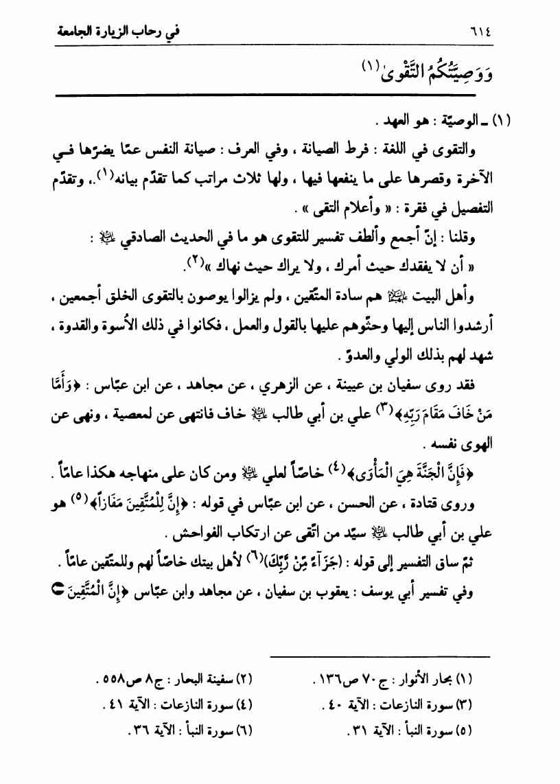 نام کتاب : في رحاب الزيارة الجامعة، البيان الكامل لفضائل أهل البيت ع ومناقبهم الرائعة في زيارتهم الجامعة نویسنده : السيد علي الحسيني الصدر جلد : 1 صفحه : 614