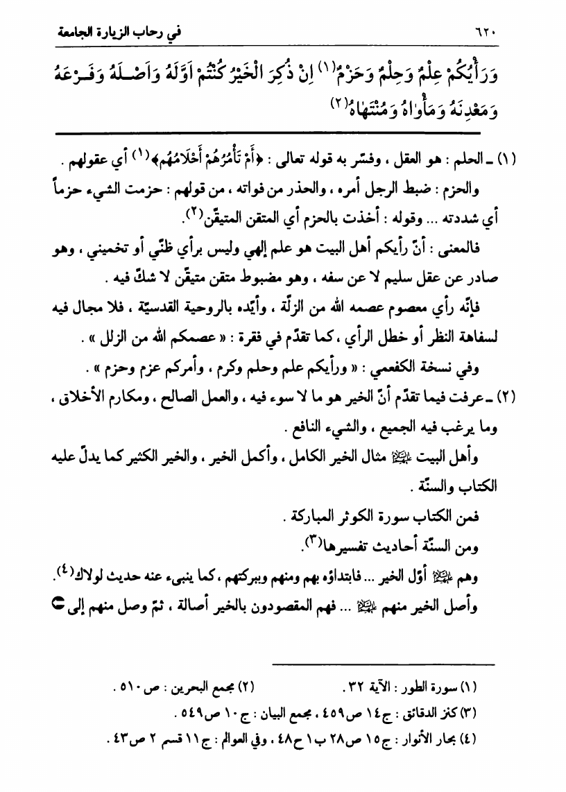 نام کتاب : في رحاب الزيارة الجامعة، البيان الكامل لفضائل أهل البيت ع ومناقبهم الرائعة في زيارتهم الجامعة نویسنده : السيد علي الحسيني الصدر جلد : 1 صفحه : 620