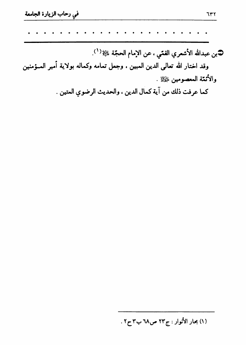 نام کتاب : في رحاب الزيارة الجامعة، البيان الكامل لفضائل أهل البيت ع ومناقبهم الرائعة في زيارتهم الجامعة نویسنده : السيد علي الحسيني الصدر جلد : 1 صفحه : 632