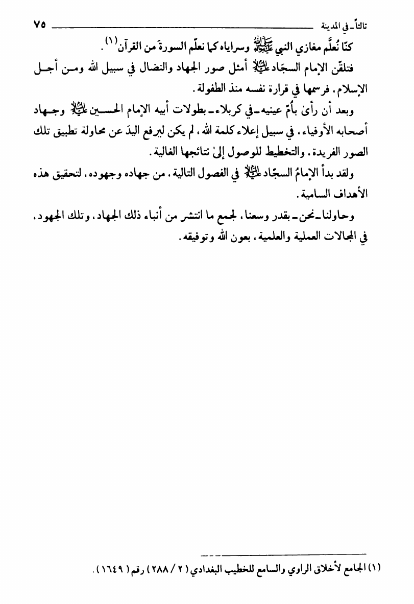 جهاد الإمام السجاد ، زين العابدين علي بن الحسين بن علي بن أبي طالب ع