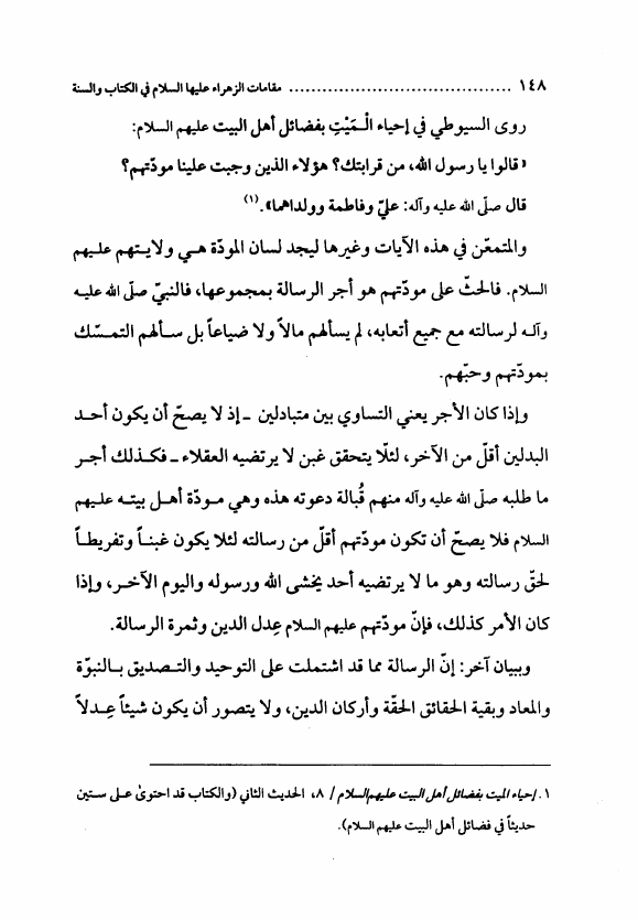 مقامات فاطمة الزهراء ع في الكتاب والسنة، ويليه الوراثة الإصطفائية