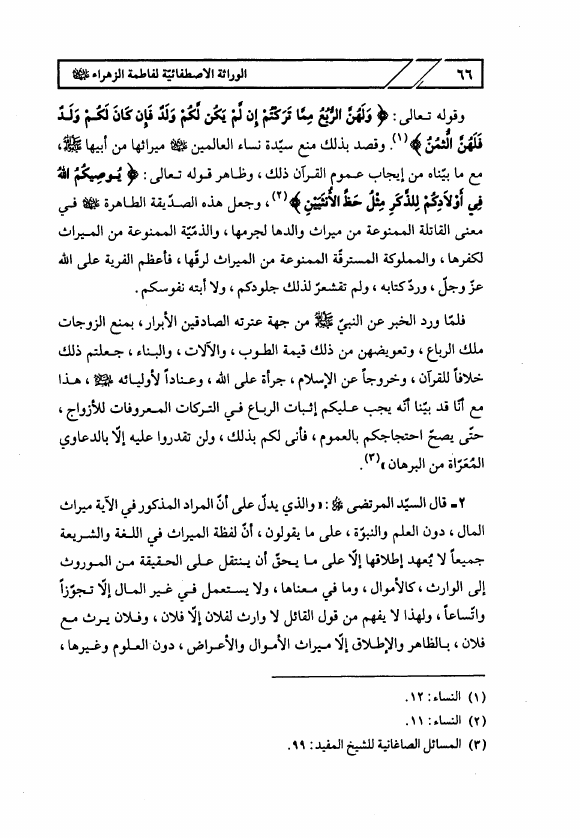 مقامات فاطمة الزهراء ع في الكتاب والسنة، ويليه الوراثة الإصطفائية