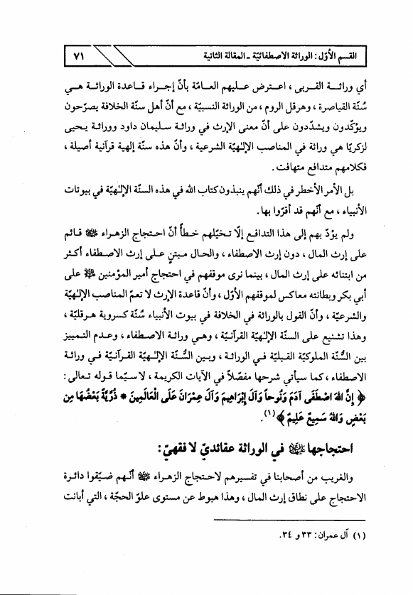 مقامات فاطمة الزهراء ع في الكتاب والسنة، ويليه الوراثة الإصطفائية