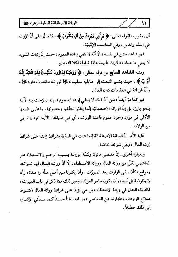 مقامات فاطمة الزهراء ع في الكتاب والسنة، ويليه الوراثة الإصطفائية