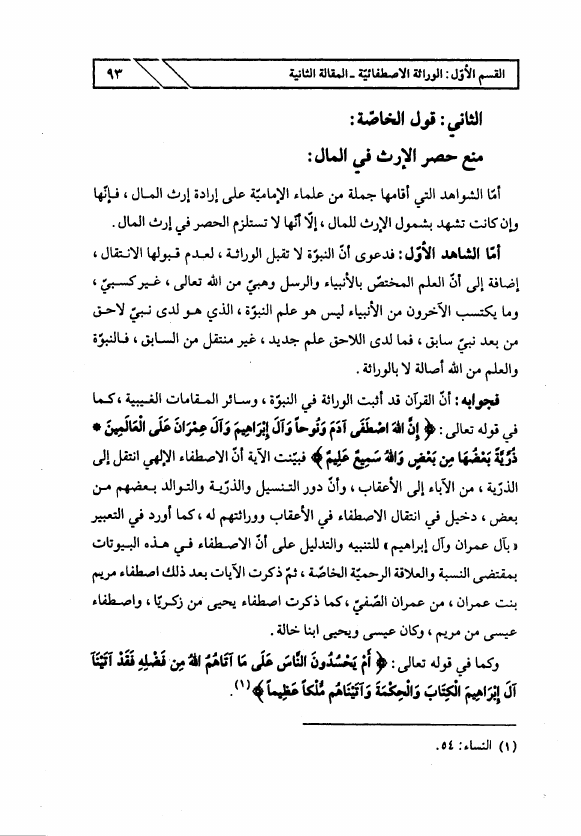 مقامات فاطمة الزهراء ع في الكتاب والسنة، ويليه الوراثة الإصطفائية
