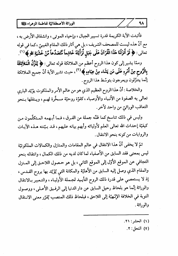 مقامات فاطمة الزهراء ع في الكتاب والسنة، ويليه الوراثة الإصطفائية