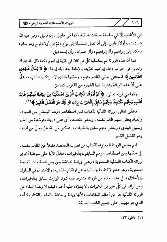 مقامات فاطمة الزهراء ع في الكتاب والسنة، ويليه الوراثة الإصطفائية