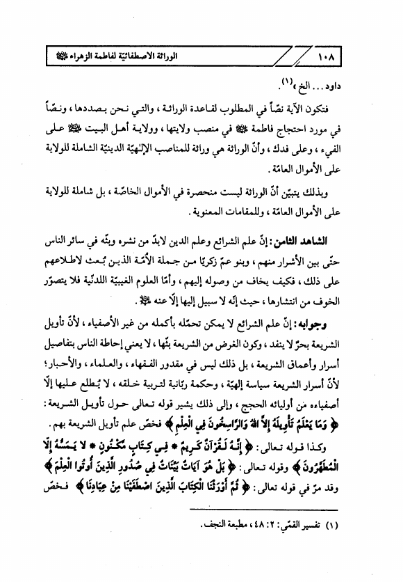 مقامات فاطمة الزهراء ع في الكتاب والسنة، ويليه الوراثة الإصطفائية