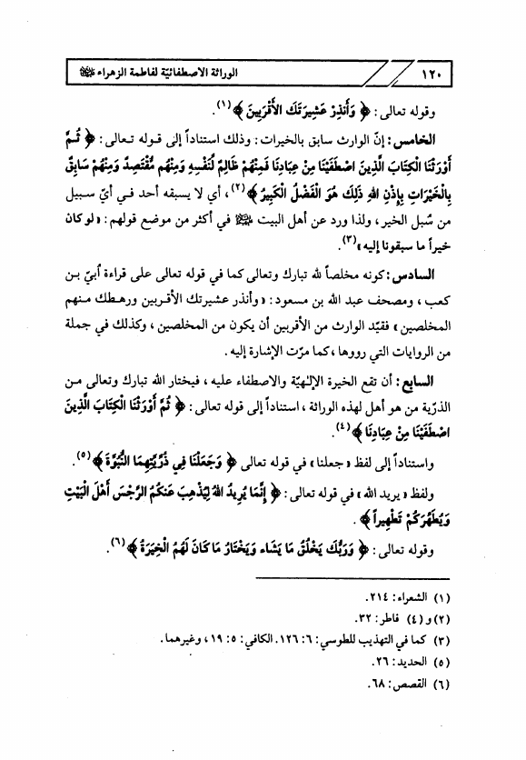 مقامات فاطمة الزهراء ع في الكتاب والسنة، ويليه الوراثة الإصطفائية