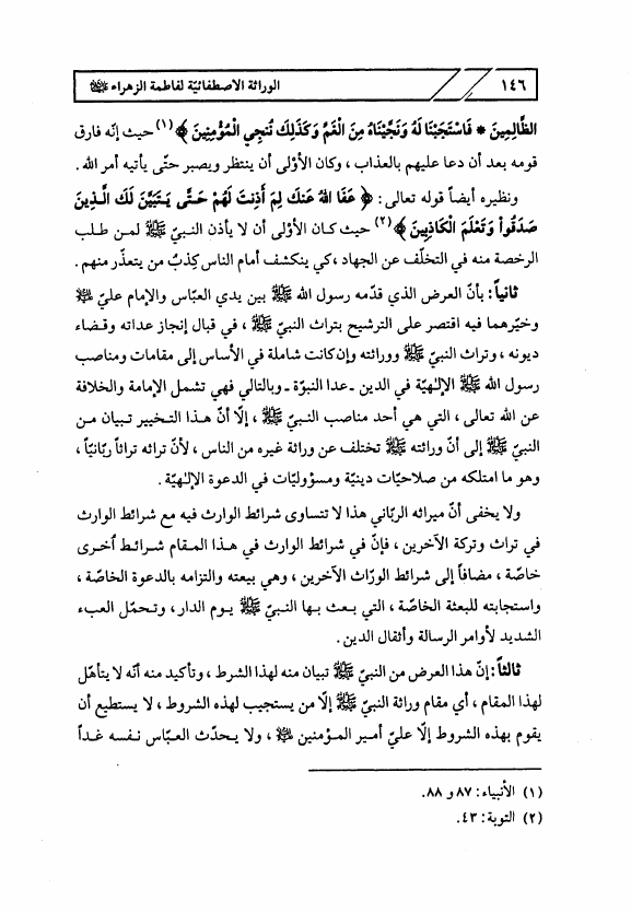 مقامات فاطمة الزهراء ع في الكتاب والسنة، ويليه الوراثة الإصطفائية
