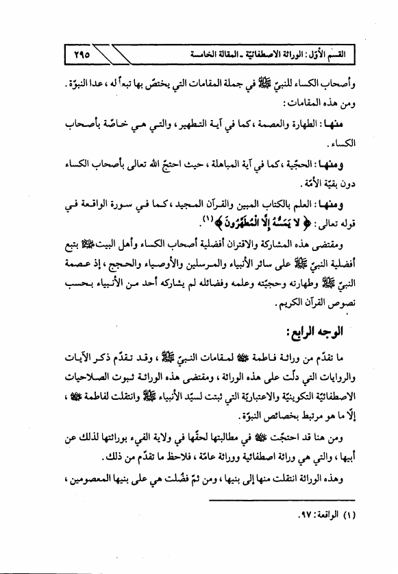 مقامات فاطمة الزهراء ع في الكتاب والسنة، ويليه الوراثة الإصطفائية