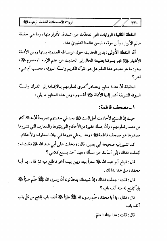 مقامات فاطمة الزهراء ع في الكتاب والسنة، ويليه الوراثة الإصطفائية