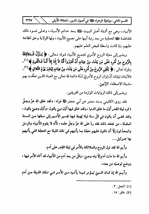 مقامات فاطمة الزهراء ع في الكتاب والسنة، ويليه الوراثة الإصطفائية