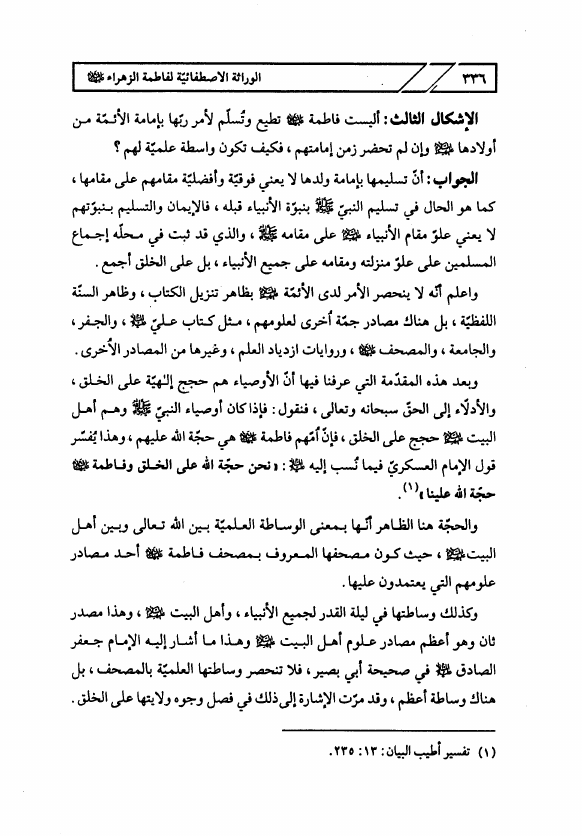 مقامات فاطمة الزهراء ع في الكتاب والسنة، ويليه الوراثة الإصطفائية