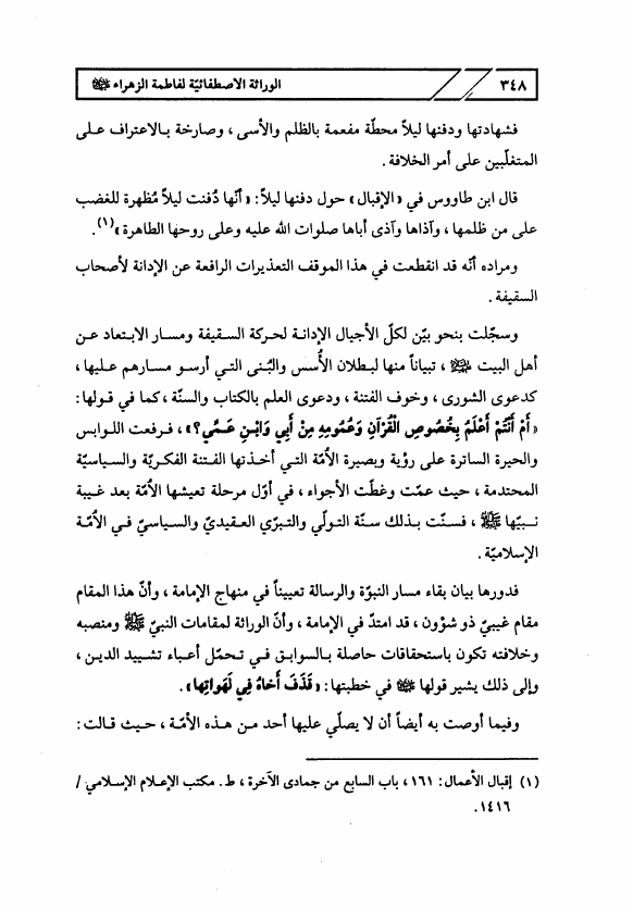 مقامات فاطمة الزهراء ع في الكتاب والسنة، ويليه الوراثة الإصطفائية