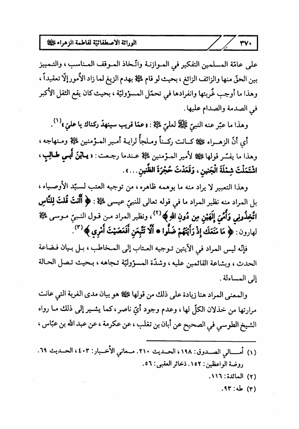 مقامات فاطمة الزهراء ع في الكتاب والسنة، ويليه الوراثة الإصطفائية