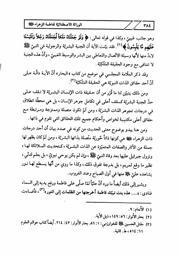 مقامات فاطمة الزهراء ع في الكتاب والسنة، ويليه الوراثة الإصطفائية