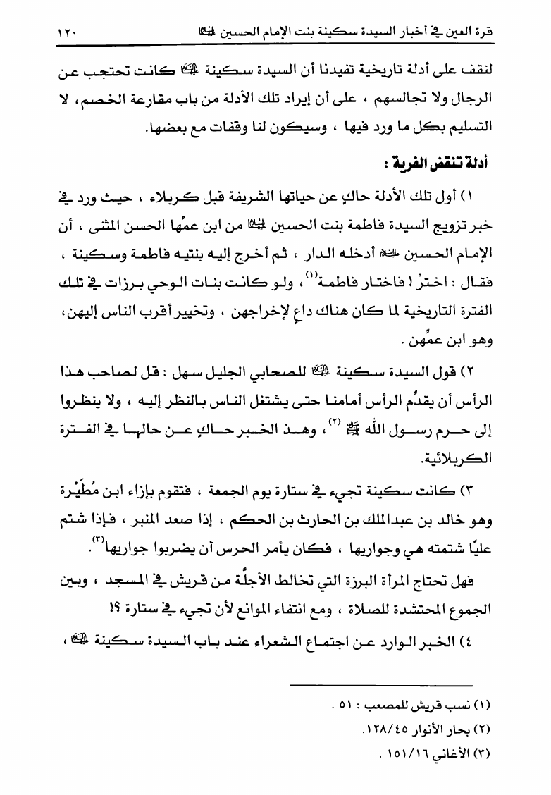 قرة العين ، في أخبار السيدة سكينة بن الإمام الحسين عليها السلام