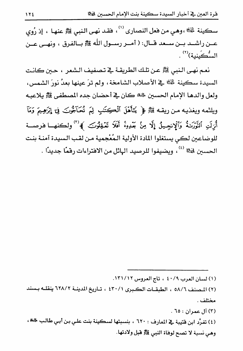 قرة العين ، في أخبار السيدة سكينة بن الإمام الحسين عليها السلام