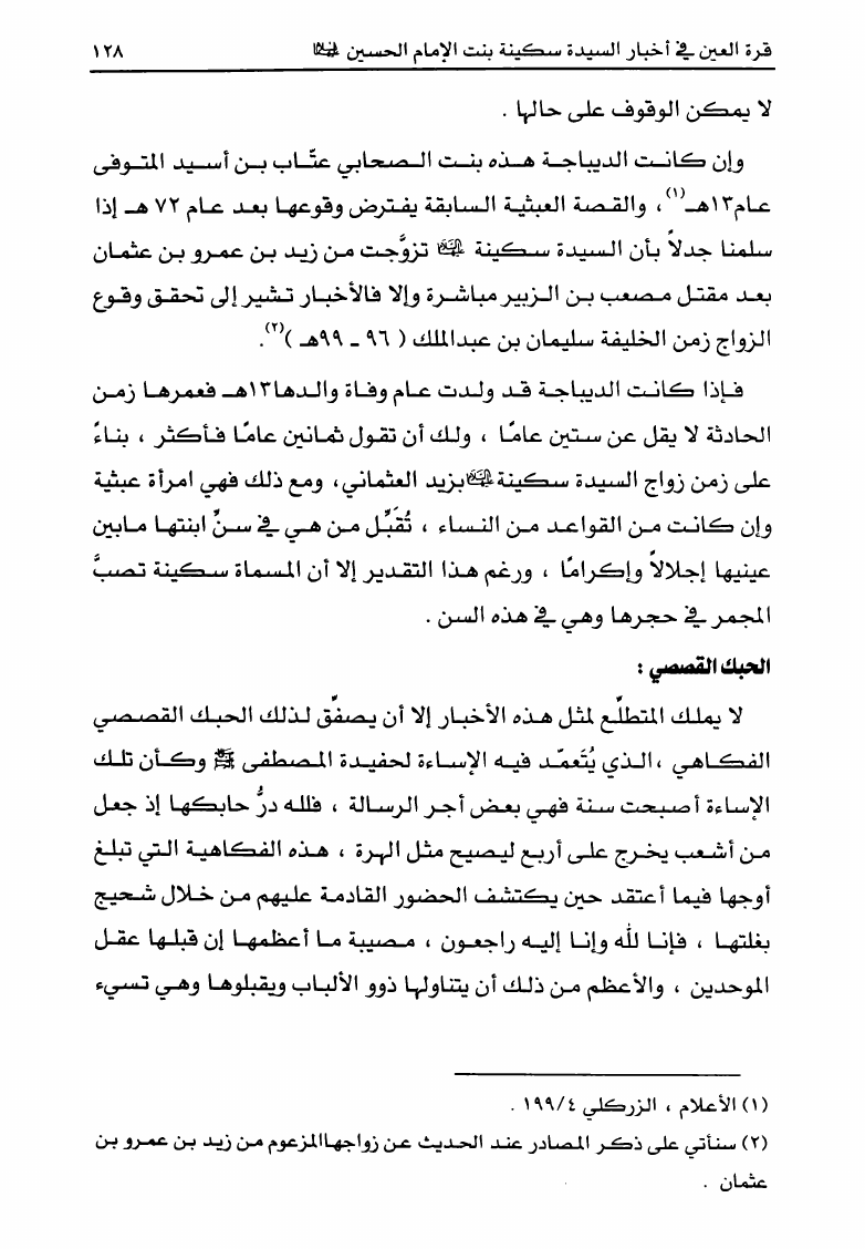 قرة العين ، في أخبار السيدة سكينة بن الإمام الحسين عليها السلام