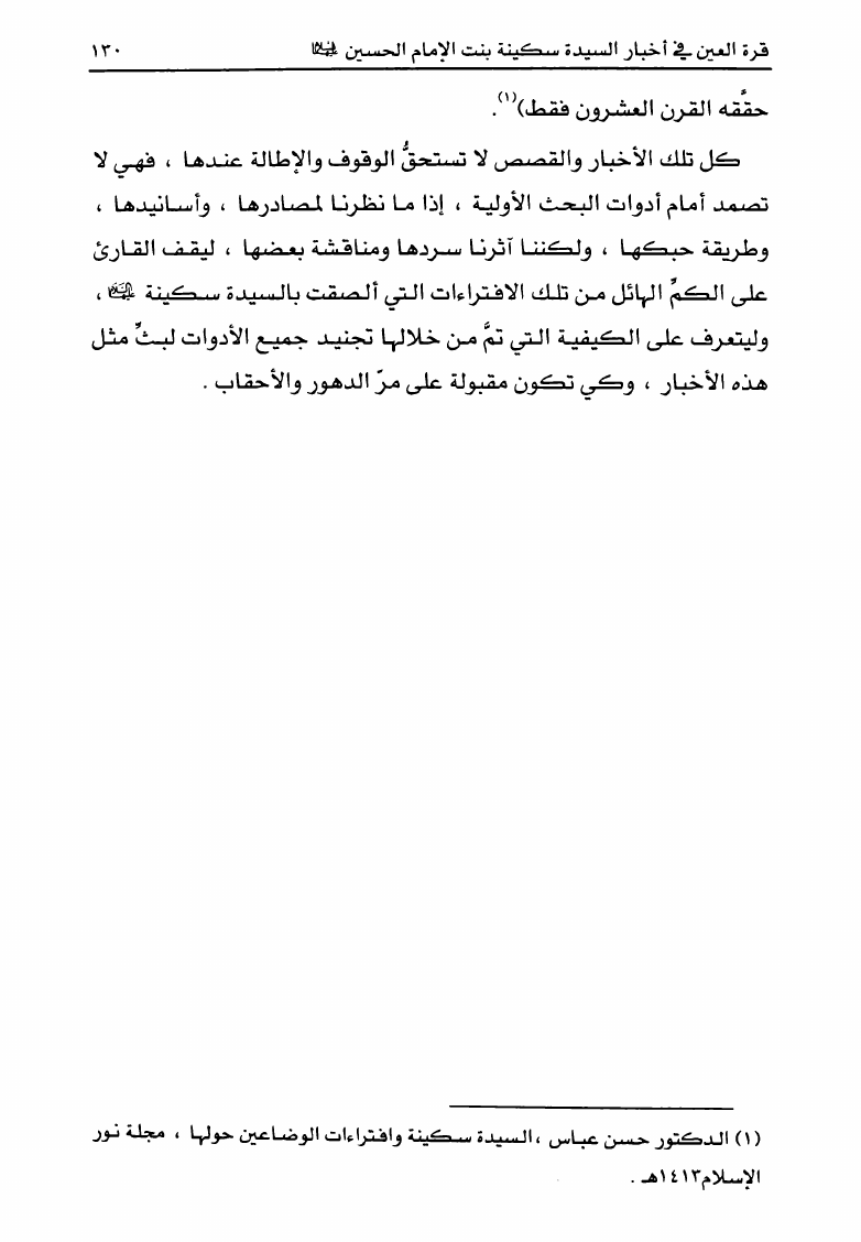قرة العين ، في أخبار السيدة سكينة بن الإمام الحسين عليها السلام
